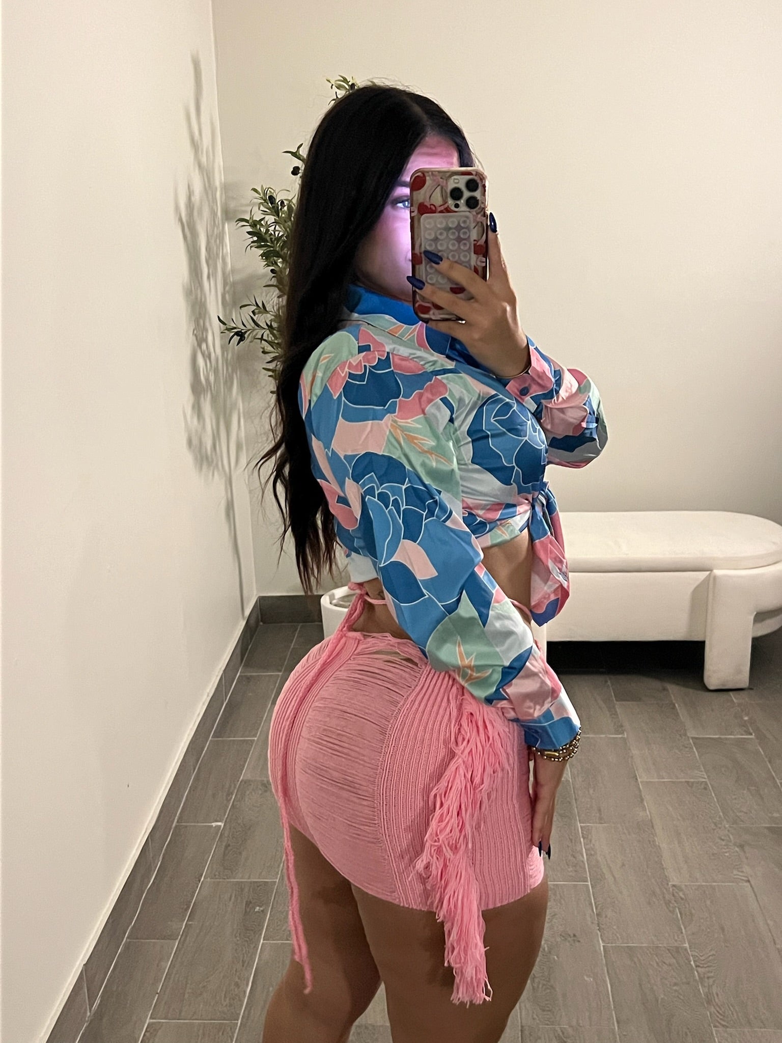 Modelo utiliza talla large y regularmente utiliza talla 9-11 de mahón.