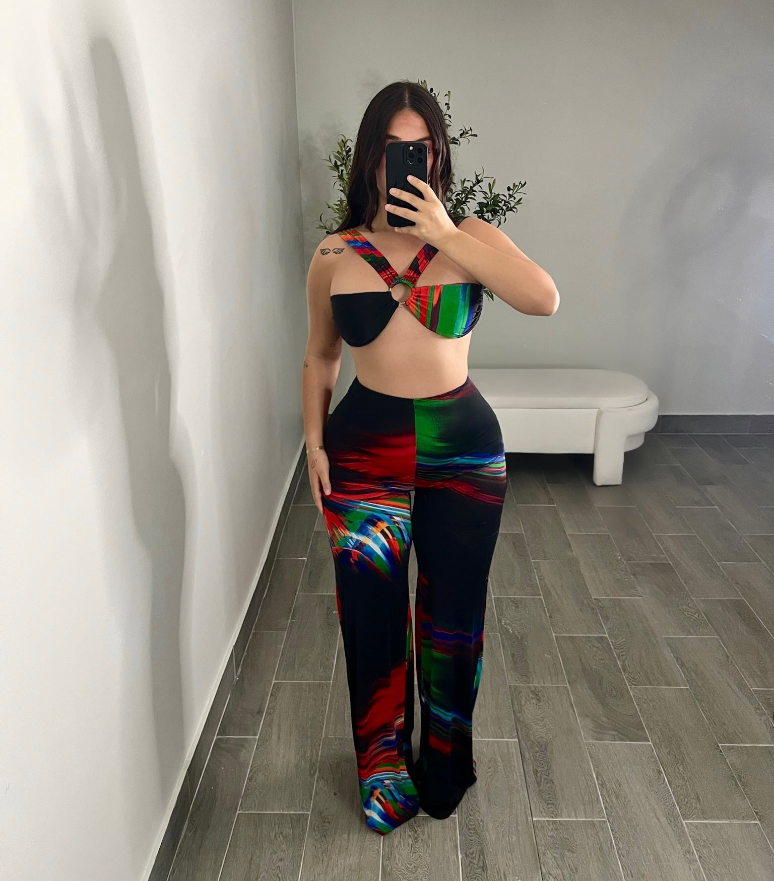 Modelo utiliza talla large y maniquí small. Modelo regularmente es 9-11 de mahón.