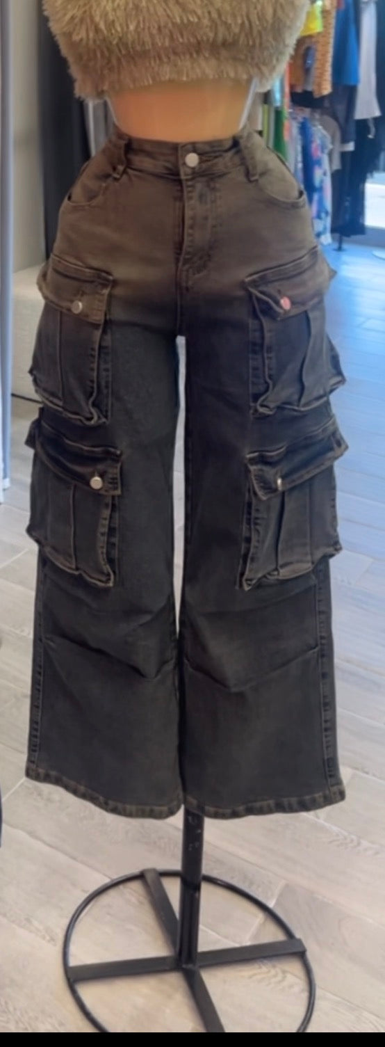 Corre normal, estira mucho,  talle alto, bolsillos y cargo.